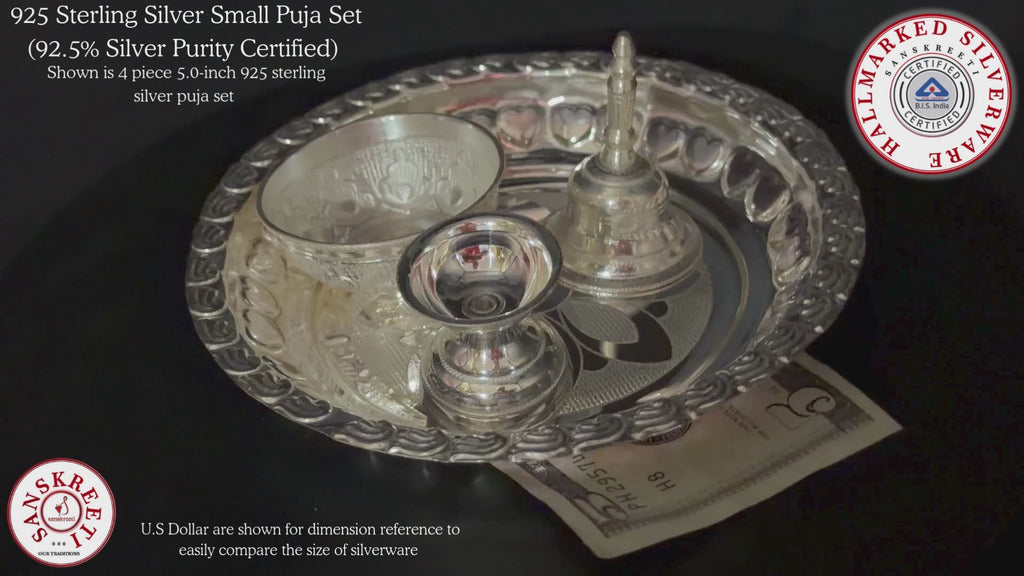 925 Sterling Silver 5.0 inch Small Puja Set- 5.0" Set #03